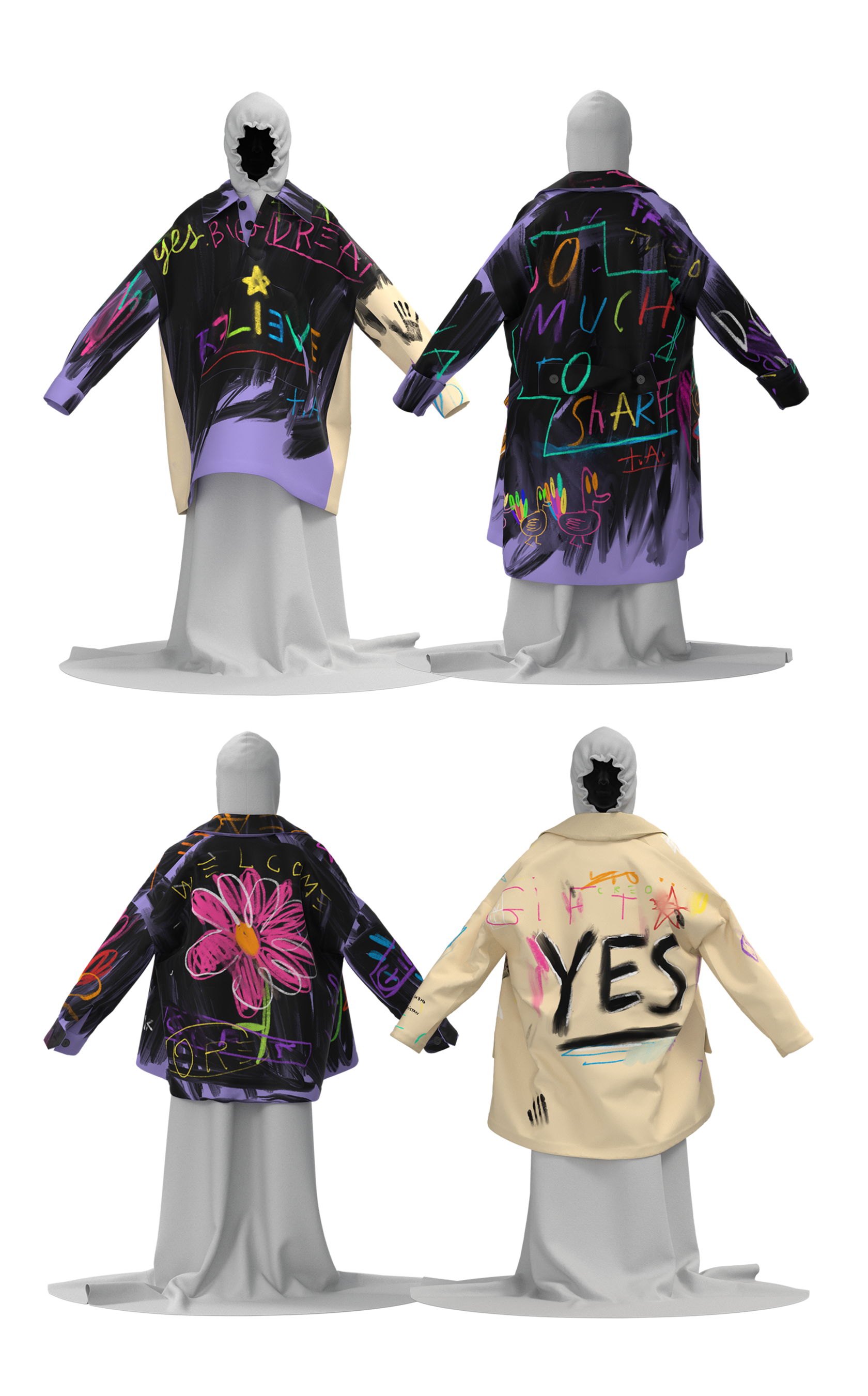 Дизайнеры сделали коллекцию вещей, вдохновленных детскими рисунками на асфальте, фантазиями, футуристичным взглядом на мир, цифровой модой, любовью и верой в то, что "ВСЕ МЕНЯЕТСЯ", когда люди друг другу помогают.